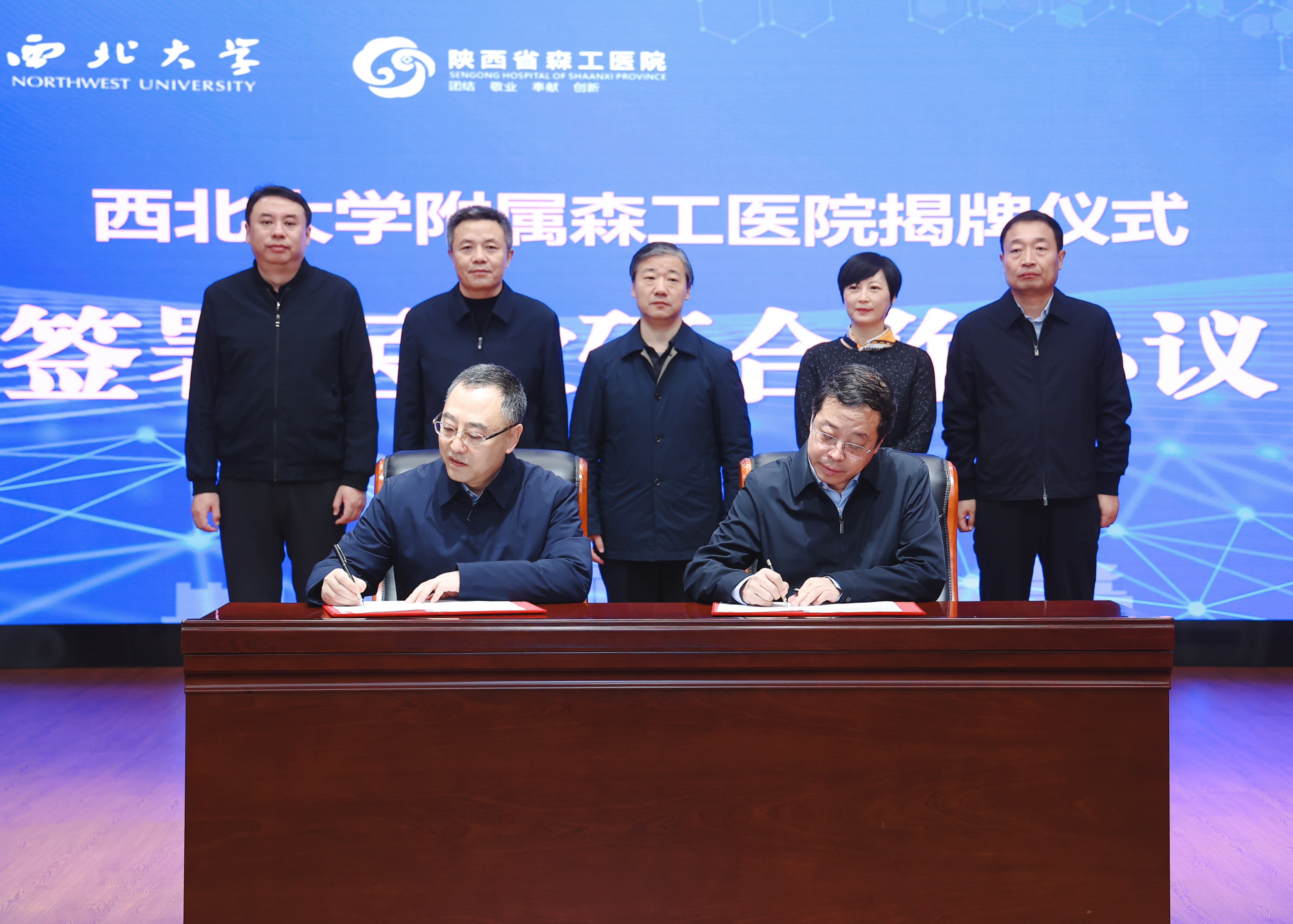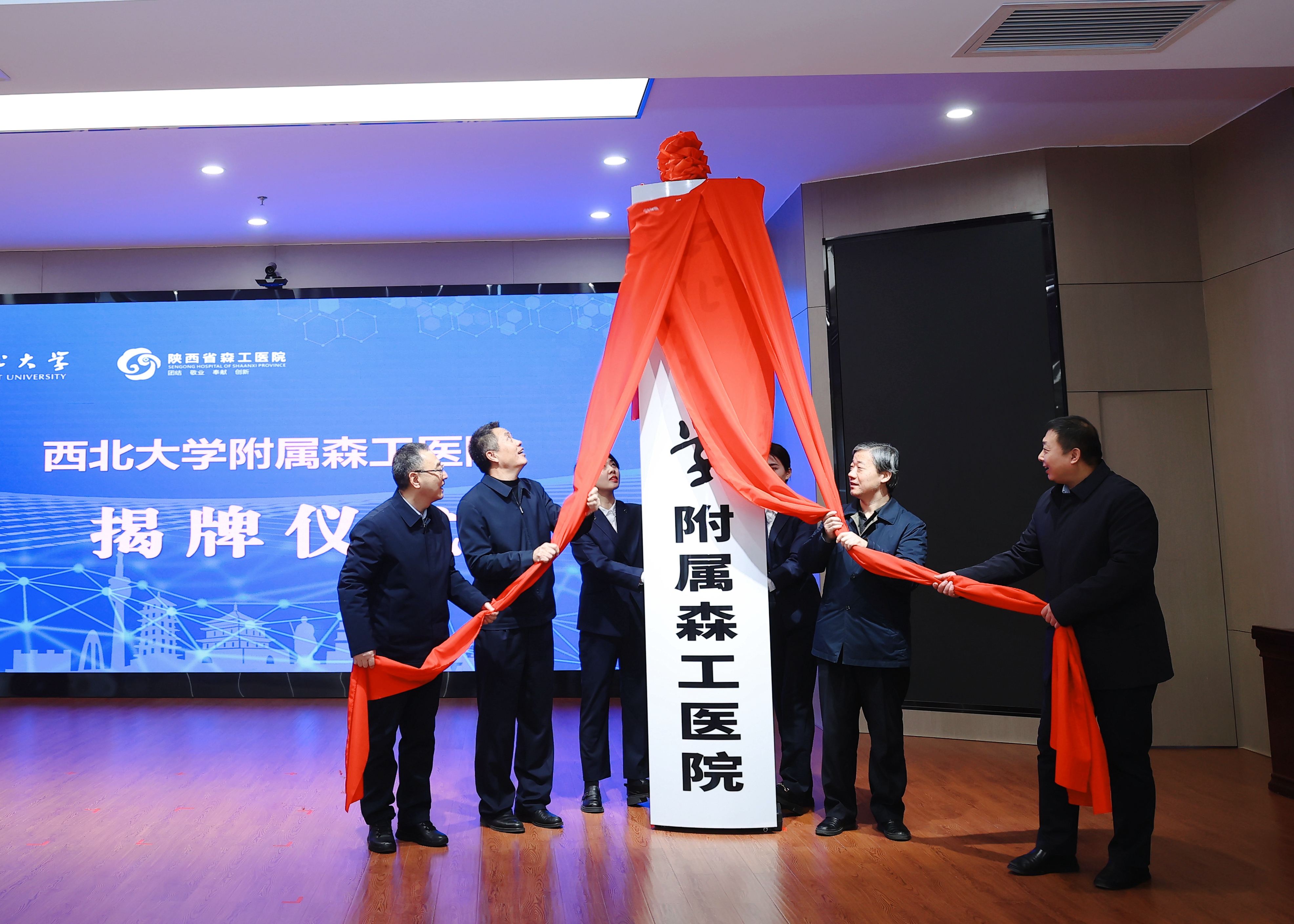 12月24日,qy球友会-陕西省森工医院医教研合作签约暨qy球友会附属森工医院揭牌仪式在陕西省森工医院举行。省卫健委党组成员、副主任薛寒,省林业局党组成员、省森林资源管理局党委书记、局长朱建军,鄠邑区委书记李化,市卫健委党委委员、副主任张波,我校党委书记蒋林出席活动,省卫健委、省森林资源管理局、鄠邑区、市卫健委的相关职能部门负责人,我校国内处、qy球友会、第一医院负责人,陕西省森工医院中层以上医务人员参加仪式。仪式由校党委常委、副校长李振海主持。